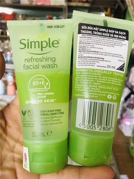 Với công thức 100% không chứa xà phòng cùng các thành phần siêu dưỡng da, Gel Rửa Mặt Simple Refreshing Facial Wash phù hợp sử dụng hàng ngày cho mọi loại da, ngay cả trên những làn da nhạy cảm nhất. Đồng thời, tương tự như các sản phẩm khác của Simple, Refreshing Facial Wash đã được kiểm nghiệm da liễu, không gây dị ứng, không chứa các hóa chất gây hại và không chứa cồn, dầu khoáng, màu nhân tạo, hương liệu.