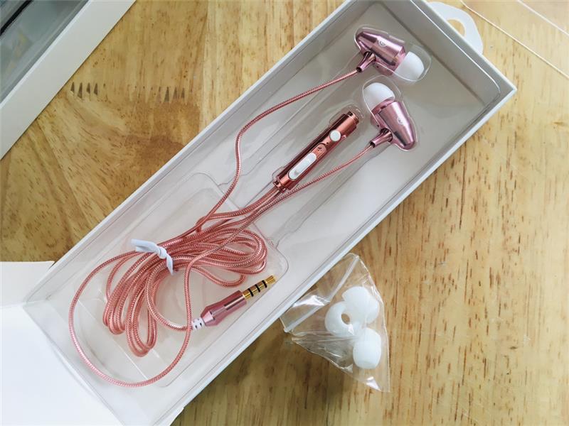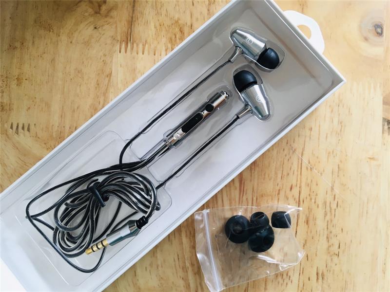 - Sản phẩm gồm: 1 dây tai nghe, 4 nút bịt đầu nhét tai thay thế, 1 hộp đựng đẹp