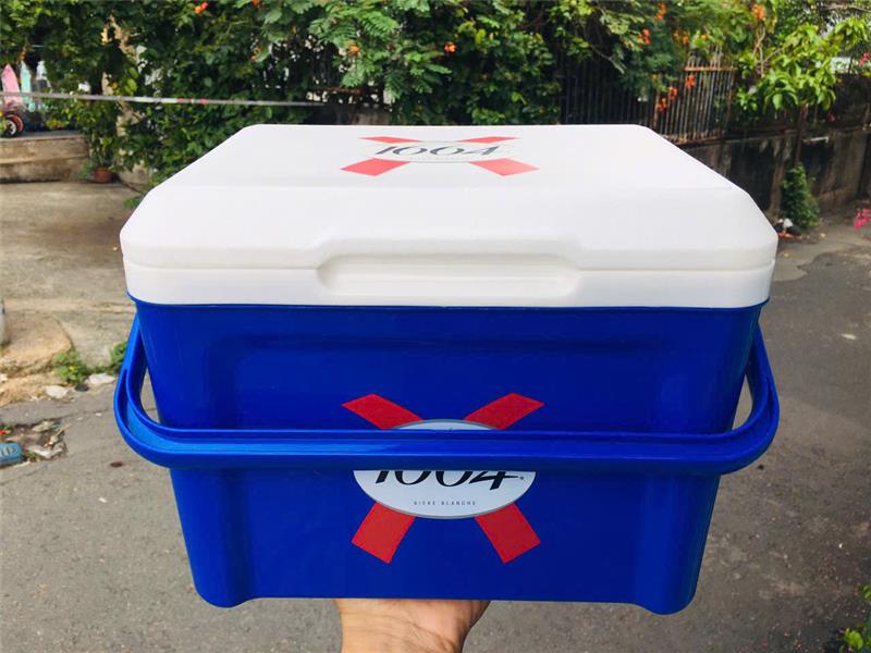 - Thùng đá có quai xách, nắp liền có khoá 2 bên quai xách tiện cho việc di chuyển