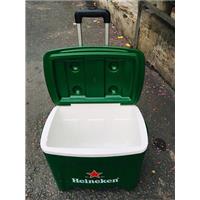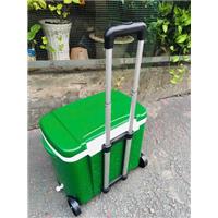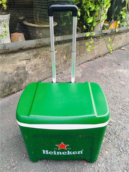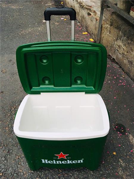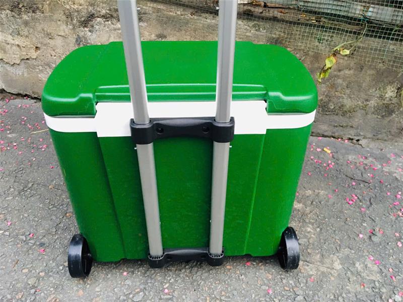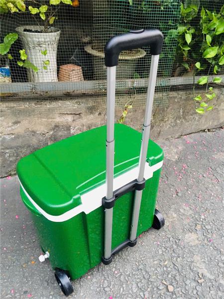 + Thiết kế nổi bật: tay kéo có thể xếp gọn vào, cùng với hai bánh xe, nhìn thùng đá như chiếc vali nhỏ gọn và tiện lợi, dễ di chuyển.
