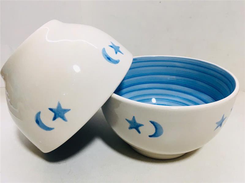 - Màu sắc/ hoạ tiết: tô thân cao, trong lòng vân xoắn ốc màu xanh, bên ngoài có hoạ tiết trăng sao