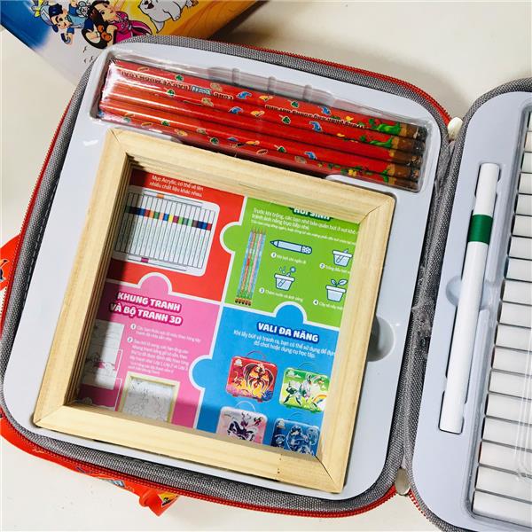 - Quy cách đóng gói: 01 bộ sản phẩm gồm: 01 vali đựng: 05 bút chì hạt mầm + 20 bút tô màu + 1 khung tranh + 2 bộ tranh tô màu và 1 tờ HDSD.
