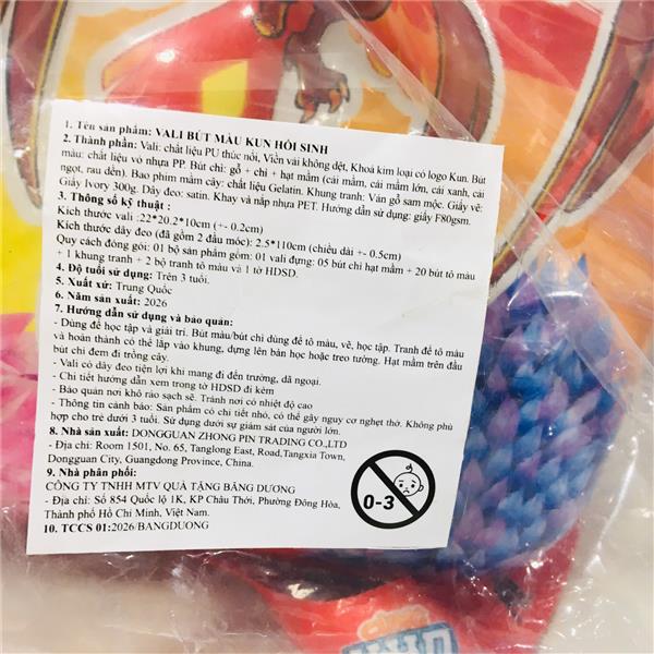 1. Tên sản phẩm: VALI BÚT MÀU KUN HỒI SINH