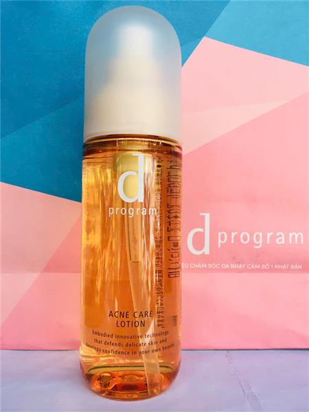 d program Acne Care Lotion là sản phẩm nước cân bằng dành cho da mụn đến từ thương hiệu mỹ phẩm d program Nhật Bản. Phiên bản mới bổ sung công nghệ Microbiome tăng cường hiệu quả gấp 3 lần củng cố hàng rào vật lý, sinh học và miễn dịch của da. Sản phẩm giúp cải thiện tình trạng mụn ẩn, mụn đầu đen, trứng cá đồng thời hỗ trợ làm giảm thâm sau mụn.