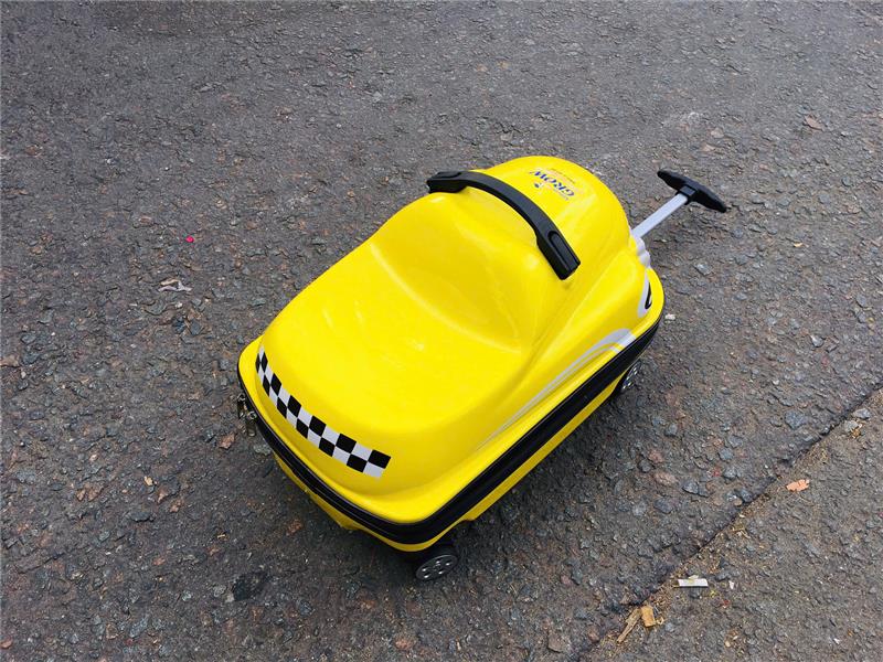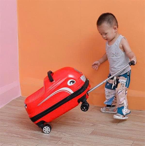+ Kiểu dáng hình thời trang, bé có thể ngồi lên vali để di chuyển hoặc kéo.