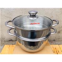 Bộ Nồi Xửng Hấp Inox 20cm Nắp Kính, Đáy Từ
