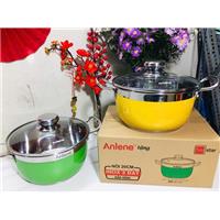 Nồi Inox FIVESTAR 3 Đáy SẮC MÀU 20cm Nắp Kính MÀU VÀNG