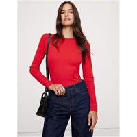 Áo Thun Nữ Tay Dài Cổ Tròn DIVIDED (H&M) Size S ĐỎ TƯƠI