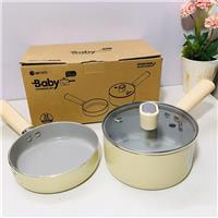 - Bộ gồm: 1 nồi, 1 chảo, 1 nắp, 1 hộp đựng bằng carton